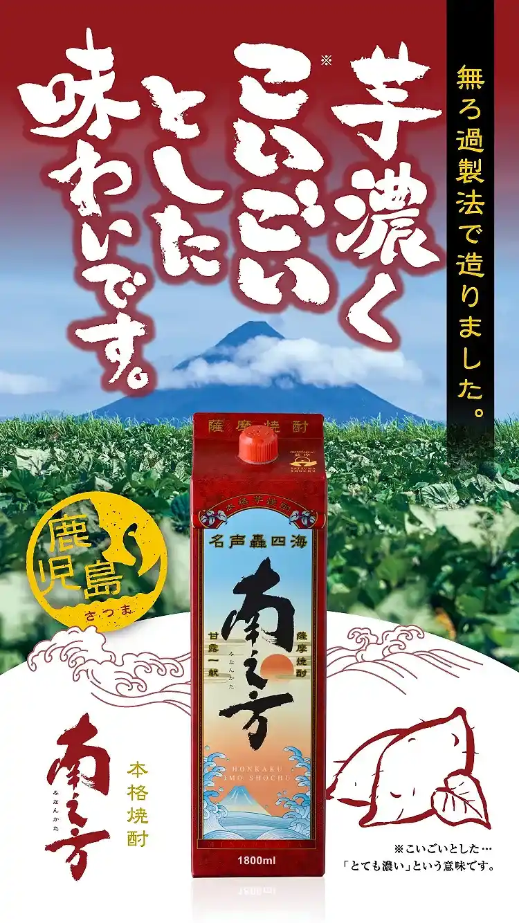 南之方は、鹿児島県南薩󠄀地域の明治期の古称「南方郷(みなみかたごう)」に由来する、本場鹿児島の風土を宿した本格芋焼酎です。